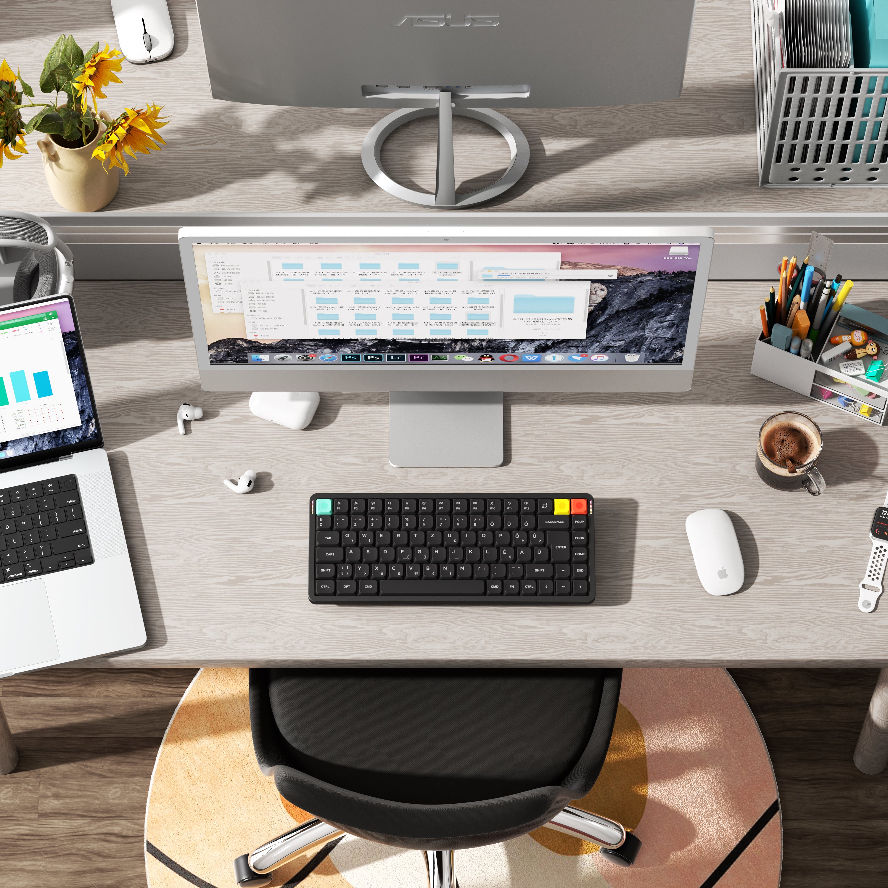 A billentyűzet vezetékesen, Bluetooth kapcsolattal és 2,4 GHz-es módban is használható, így könnyen illeszthető notebookhoz, PC-hez, tablethez vagy akár több eszközből álló setuphoz is. A low-profile kialakítás elegáns és kényelmes használatot ad, miközben a gasket mount szerkezet és a hot-swap támogatás kifinomultabb gépelési élményt és nagyobb rugalmasságot biztosít.